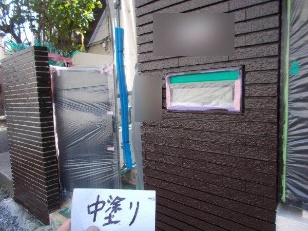 埼玉県さいたま市の外壁塗装専門店(株)さいたま美装|屋根塗装・防水工事他、相場よりも低価格、口コミでも評判、火災保険修繕も対応|さいたま市O様邸_中塗り門柱