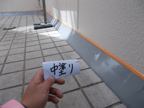 埼玉県さいたま市の外壁塗装専門店(株)さいたま美装|屋根塗装・防水工事他、相場よりも低価格、口コミでも評判、火災保険修繕も対応|さいたま市O様邸_中塗り防水3