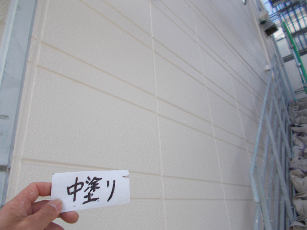 埼玉県さいたま市の外壁塗装専門店(株)さいたま美装|屋根塗装・防水工事他、相場よりも低価格、口コミでも評判、火災保険修繕も対応|さいたま市O様邸_中塗り